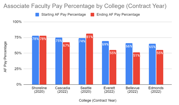 It seems clear to us that there are funds available for generous pay raises for administration. Meanwhile, full-time faculty salaries at Edmonds College have not kept up with the skyrocketing cost of living and our associate faculty are paid 65% of the full-time faculty rate to teach the same class, which is much lower than other colleges in our area.